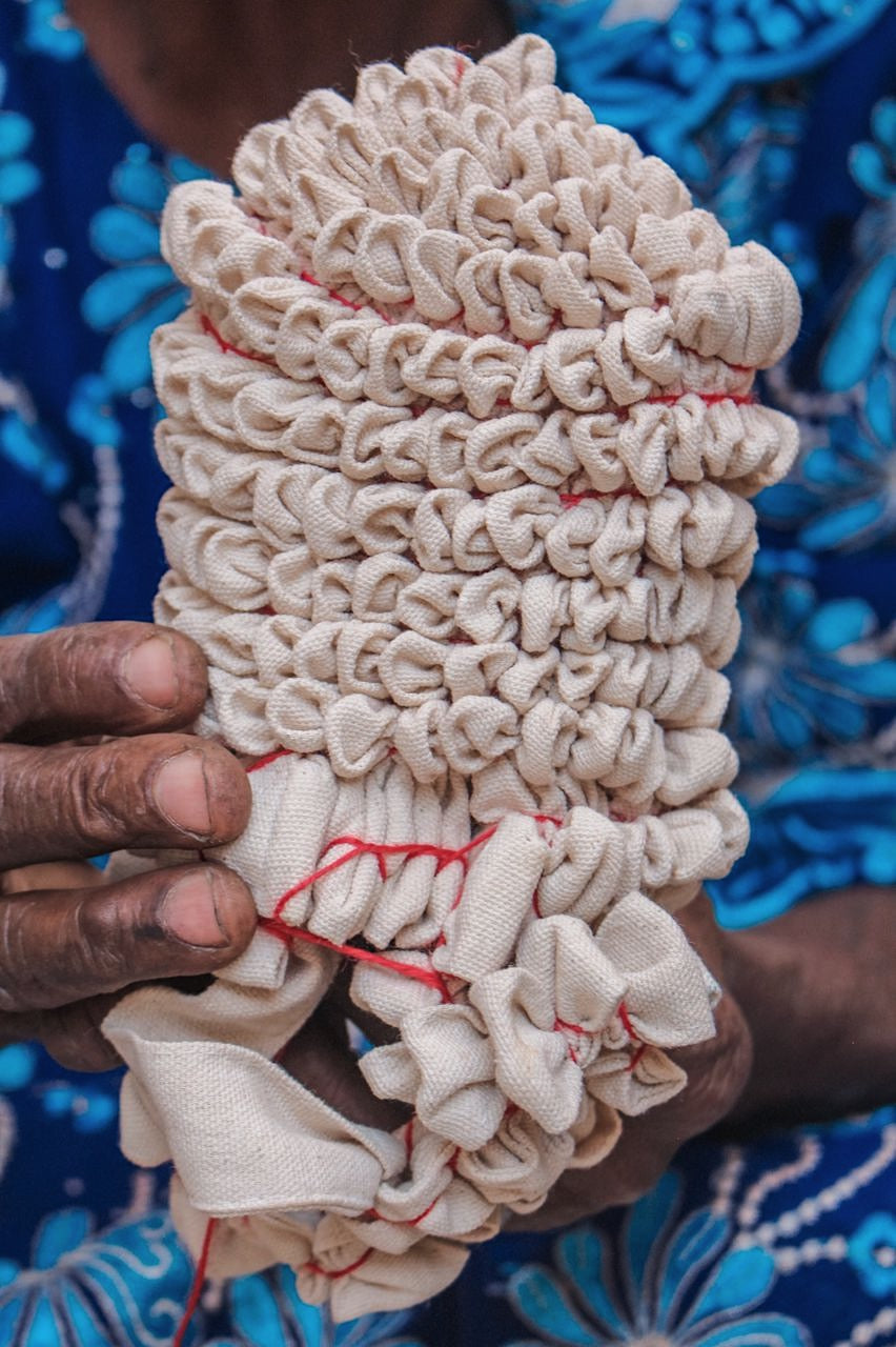 hand tied & dipped multiple times in deep pits of fermented indigo dye to achieve our signature dark shades of indigo.