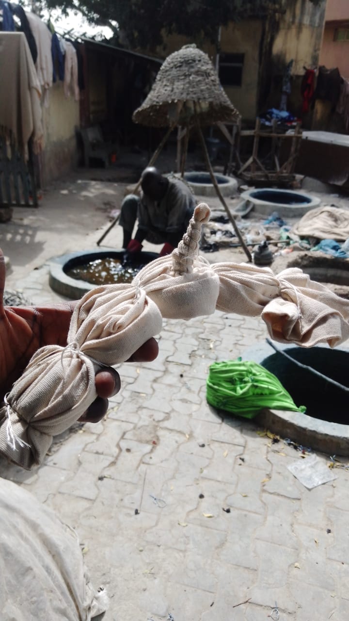 hand tied & dipped multiple times in deep pits of fermented indigo dye to achieve our signature dark shades of indigo